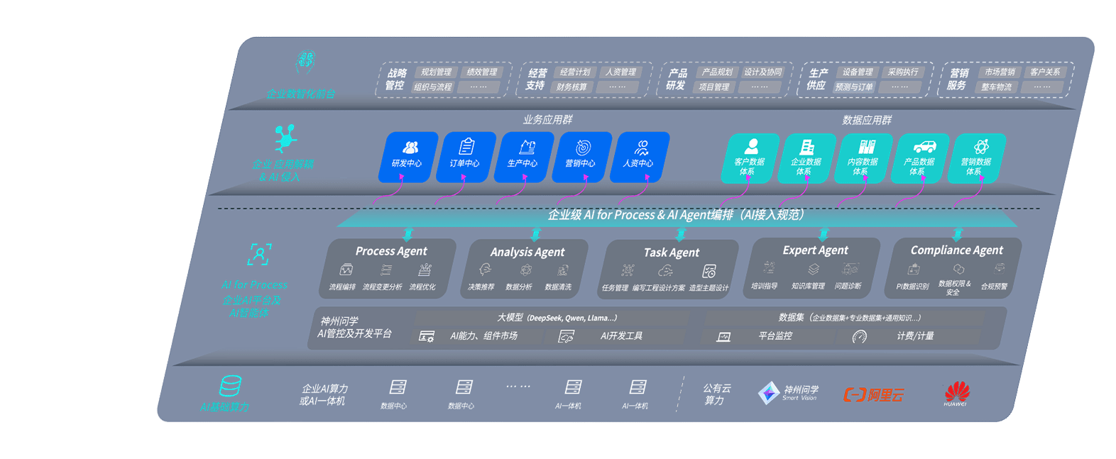 端到端的一站式AI工作空间深度融合了从企业战略规划到日常经营的全流程业务板块,,,定向解决车企内部领域多、、、、部门多、、、链条长、、、场景碎片化等难题,,支持车企快速构建以AI为核心的生产力写作体系,,,实现任务执行与AI能力的无缝集成与交互